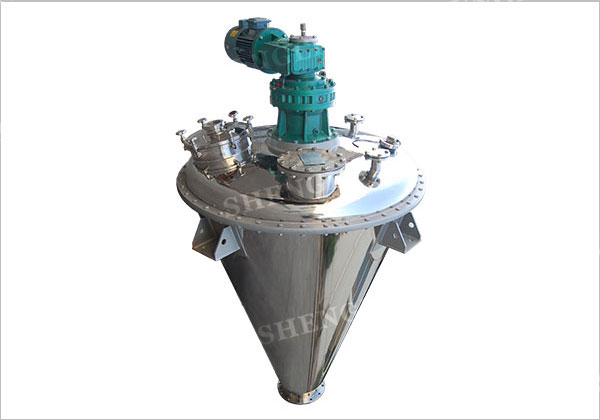 双螺旋锥形混合机搭载配置粉体球面阀或梅花错位阀;粉体球面阀凸起球面贴合螺旋底部运行曲面,较大程度减少搅拌死角,并实现较大口径放料口面积,确保放料残留,球面阀具备了对粉体、液体乃至负压状态较好的密封性;装载梅花错位阀可实现简易操作,控制放料速度,并可组合长螺旋底部支撑装置。阀门的驱动可区分为手动、气动、电动三种。
